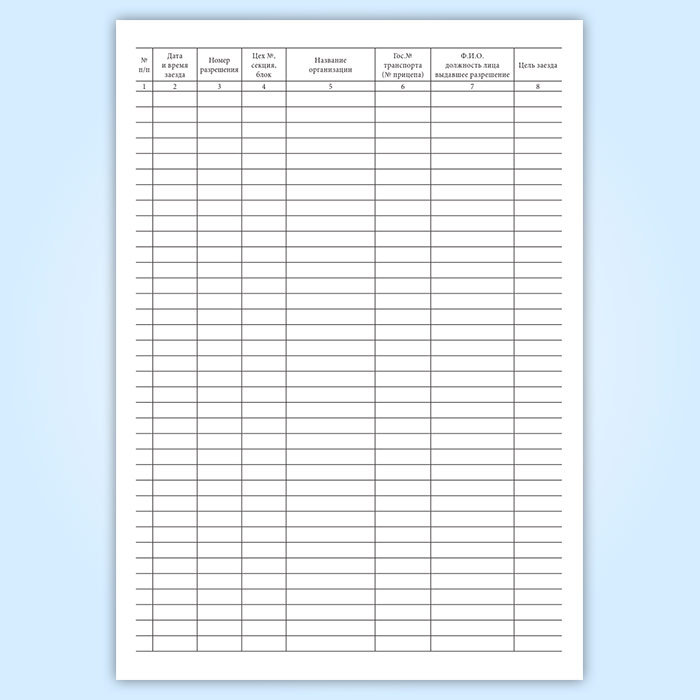 Журнал учета выданных разрешений на въезд на территорию цеха в Верее купить