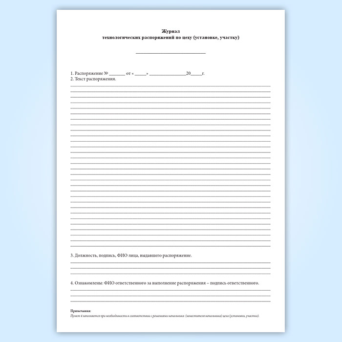 Журнал технологических распоряжений по цеху (установке, участку) в Верее купить