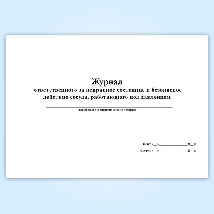 Журнал ответственного за исправное состояние и безопасное действие сосуда, работающего под давлением в Верее купить