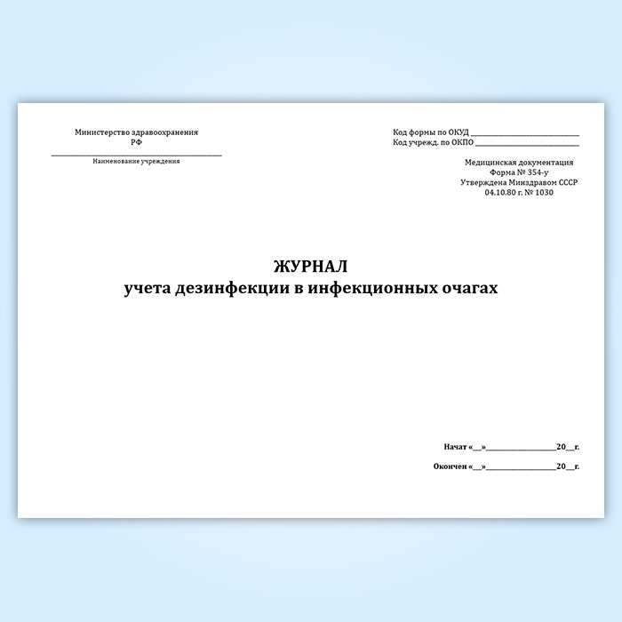 Журнал учета дезинфекции в инфекционных очагах (форма 354/у) в Верее купить