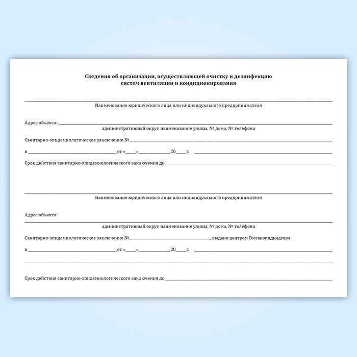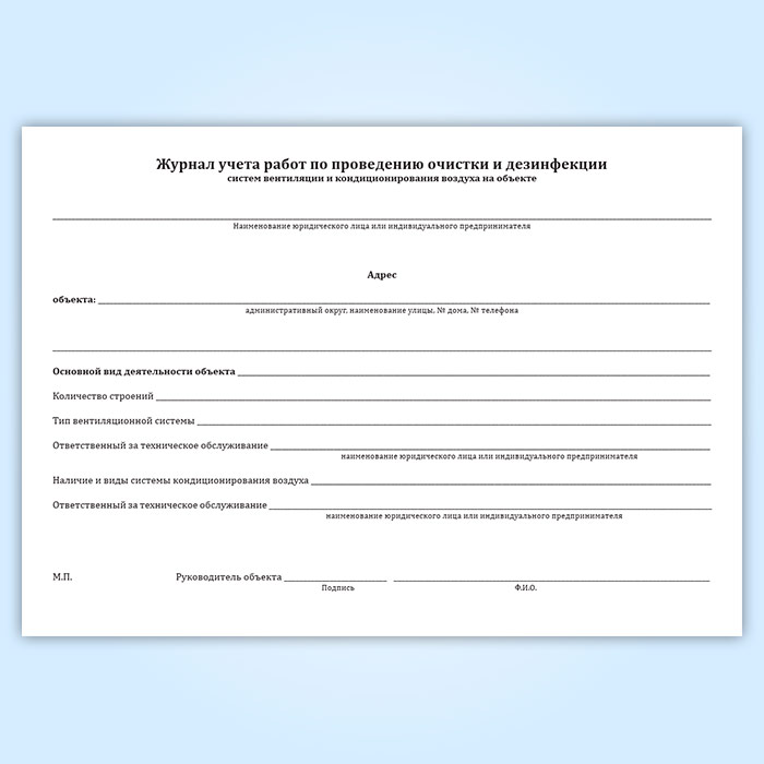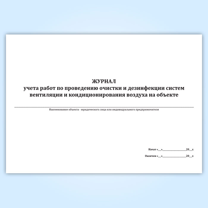 Журнал учета работ по проведению очистки и дезинфекции систем вентиляции и кондиционирования воздуха на объекте в Верее купить