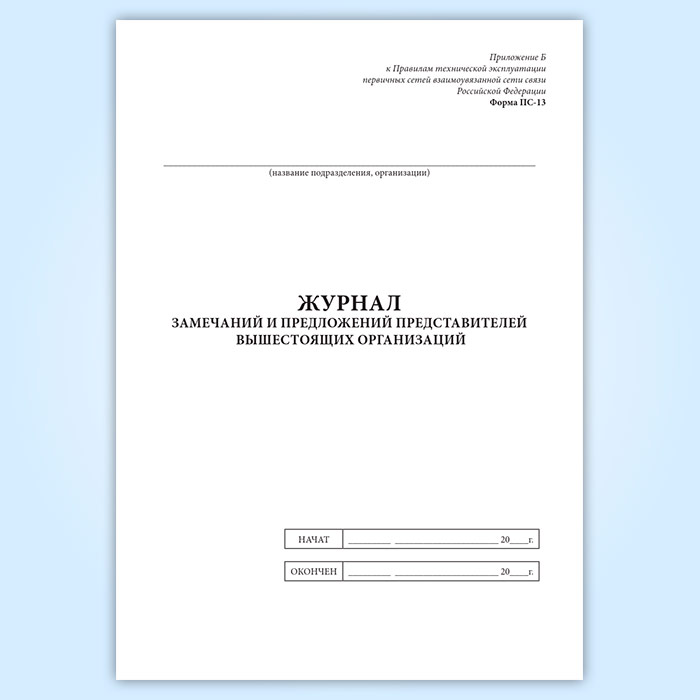 Журнал замечаний и предложений представителей вышестоящих организаций (форма ПС-13) в Верее купить