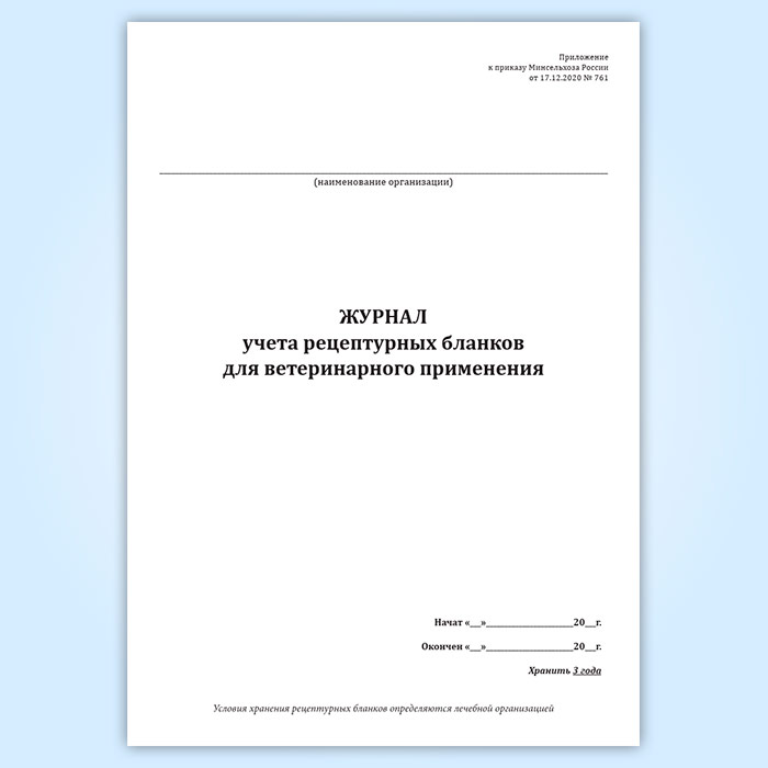 Журнал учета рецептурных бланков для ветеринарного применения в Верее купить