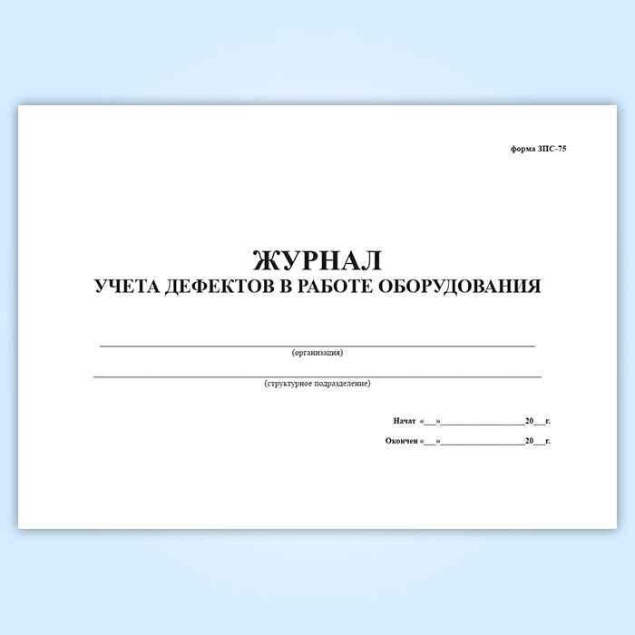 Журнал учета дефектов в работе оборудования (форма ЗПС-75) в Верее купить