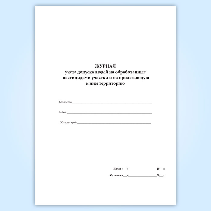 Журнал учета допуска людей на обработанные пестицидами участки и на прилегающую к ним территорию в Верее купить