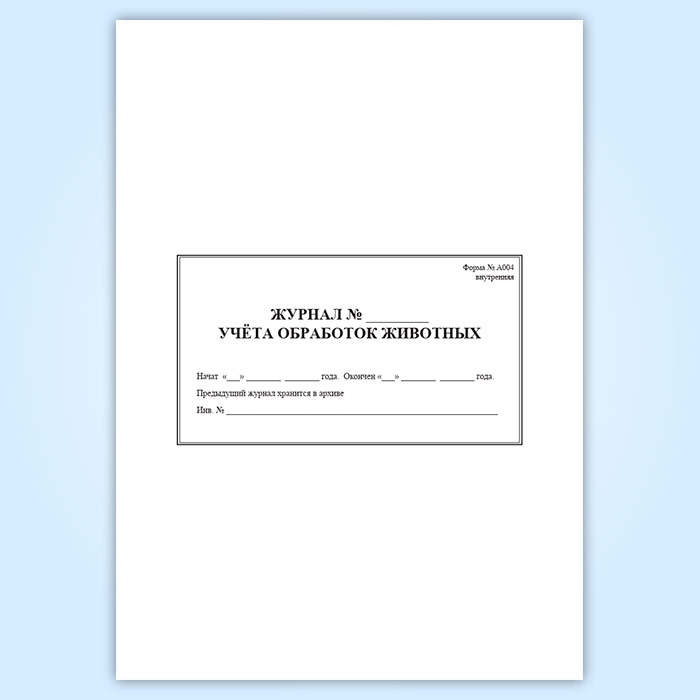 Журнал обработки животных (форма А 004) в Верее купить