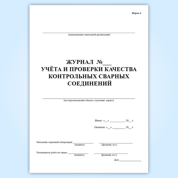 Журнал учета и проверки качества контрольных сварных соединений (форма 4) в Верее купить