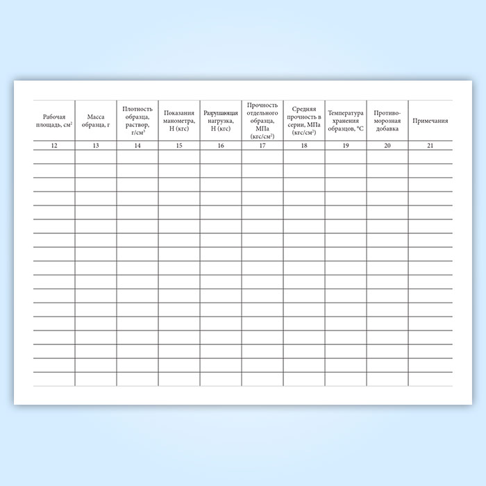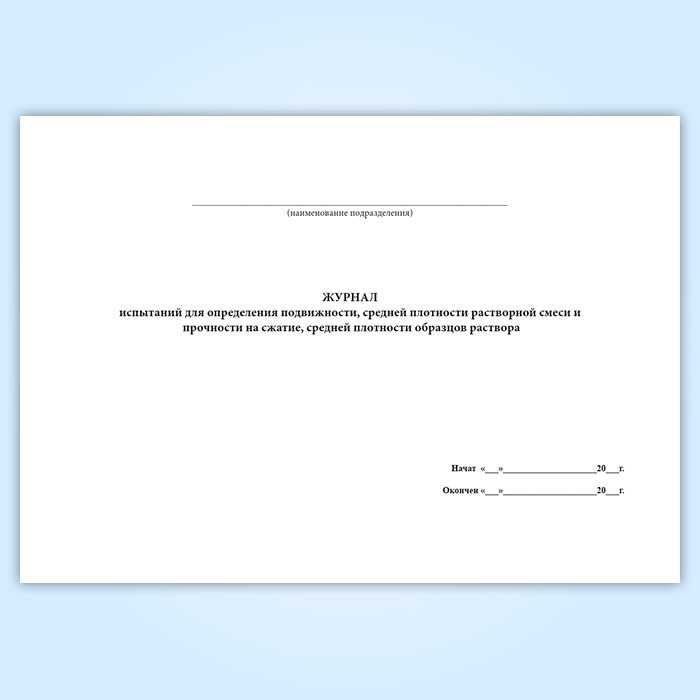 Журнал испытаний для определения подвижности, средней плотности растворной смеси и прочности на сжатие, средней плотности образцов раствора в Верее купить