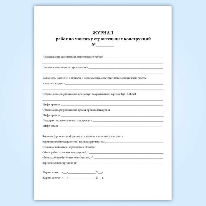 Журнал работ по монтажу строительных конструкций в Верее купить