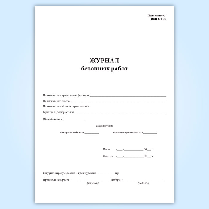Журнал бетонных работ (ВСН 430-82) в Верее купить