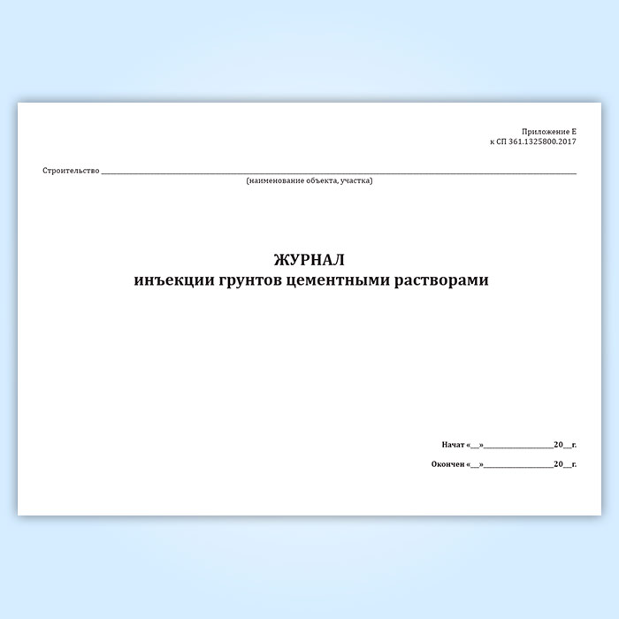 Журнал инъекции грунтов цементными растворами (СП 361.1325800.2017) в Верее купить