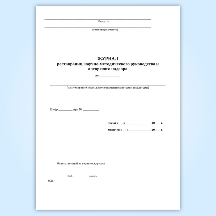 Журнал реставрации, научно-методического руководства и авторского надзора в Верее купить