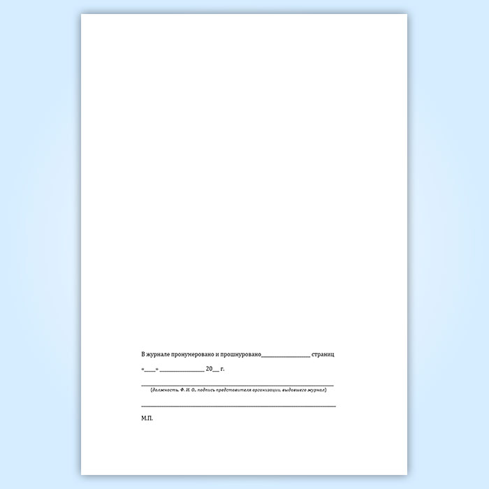Вы получаете печатную продукцию прошнурованной и c местом для вашей печати в соответствии с действующими нормативными документами: