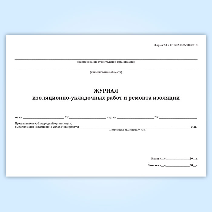 Журнал изоляционно-укладочных работ и ремонта изоляции (форма 7.1) в Верее купить