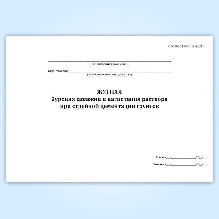 Журнал бурения скважин и нагнетания раствора при струйной цементации грунтов в Верее купить