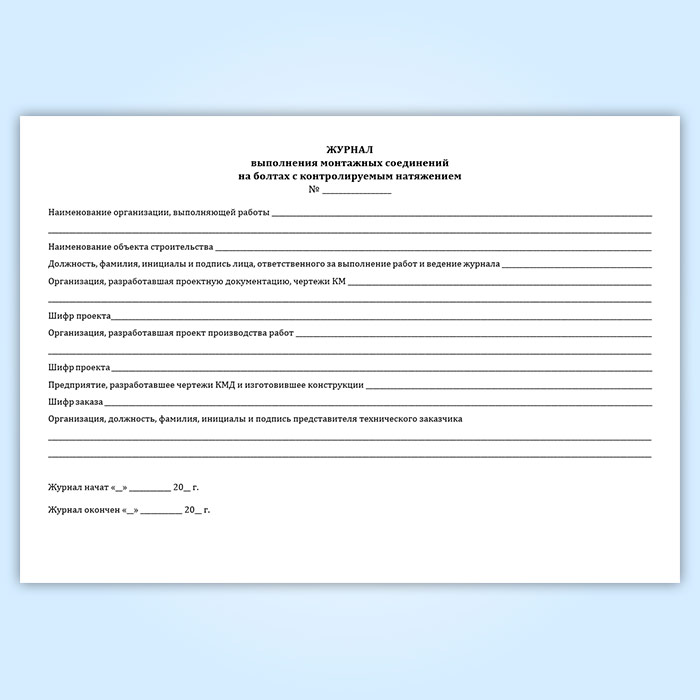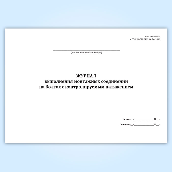 Журнал выполнения монтажных соединений на болтах с контролируемым натяжением (СТО НОСТРОЙ 2.10.76-2012) в Верее купить