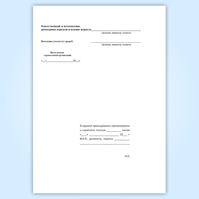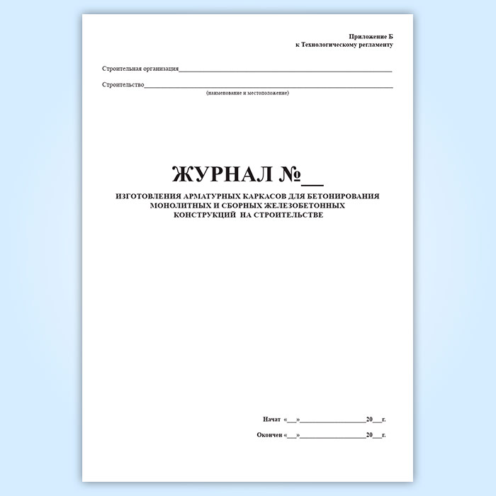 Журнал изготовления арматурных каркасов для бетонирования монолитных и сборных железобетонных конструкций на строительстве в Верее купить