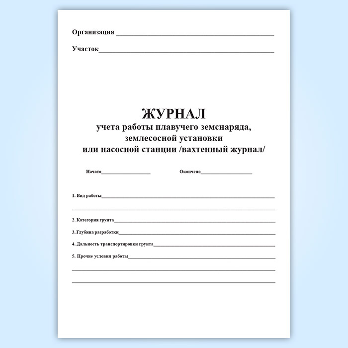 Журнал учета работы плавучего земснаряда, землесосной установки или насосной станции (вахтенный журнал) (форма ПД-3) в Верее купить