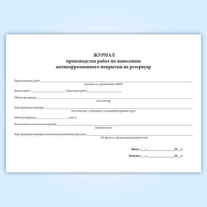 Журнал производства работ по нанесению антикоррозионного покрытия на резервуар в Верее купить