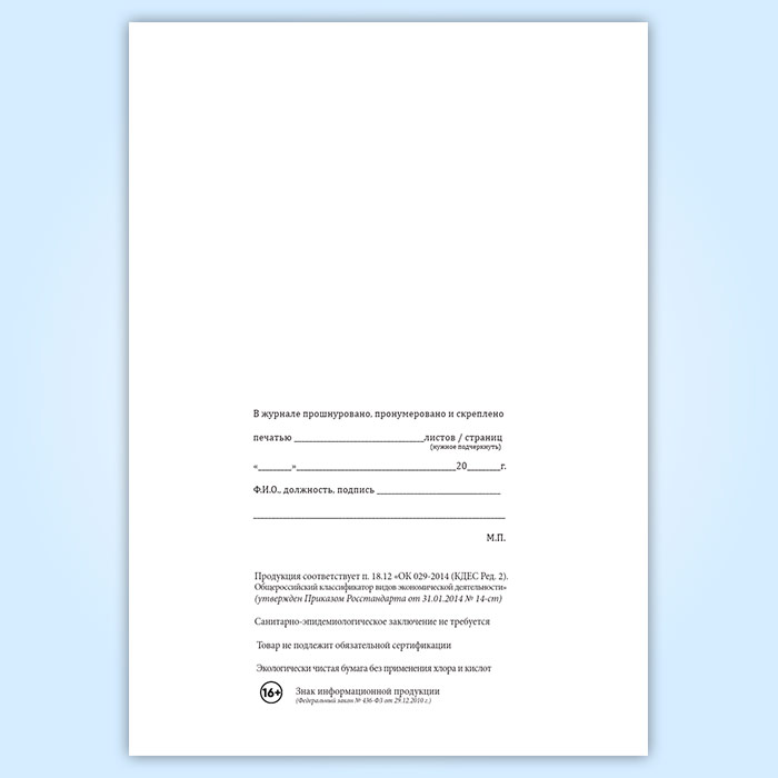 Вы получаете печатную продукцию прошнурованной и c местом для вашей печати в соответствии с действующими нормативными документами: