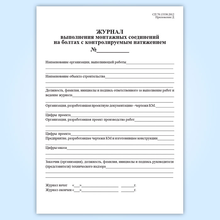 Журнал выполнения монтажных соединений на болтах с контролируемым натяжением в Верее купить