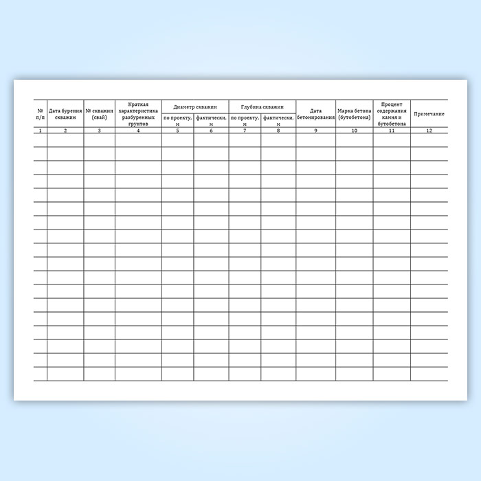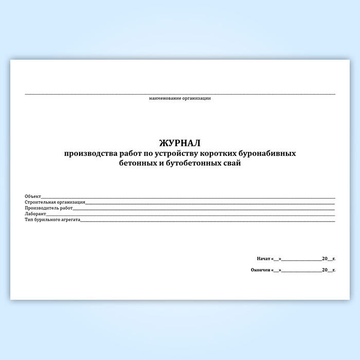 Журнал производства работ по устройству коротких буронабивных бетонных и бутобетонных свай в Верее купить