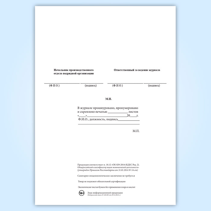 Вы получаете печатную продукцию прошнурованной и c местом для вашей печати в соответствии с действующими нормативными документами: