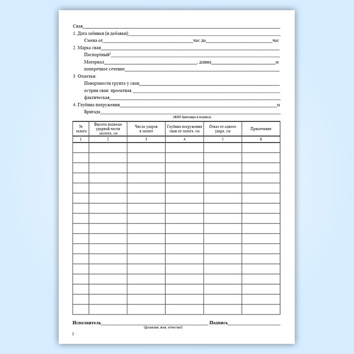 Журнал погружения свай (свай-оболочек) в Верее купить