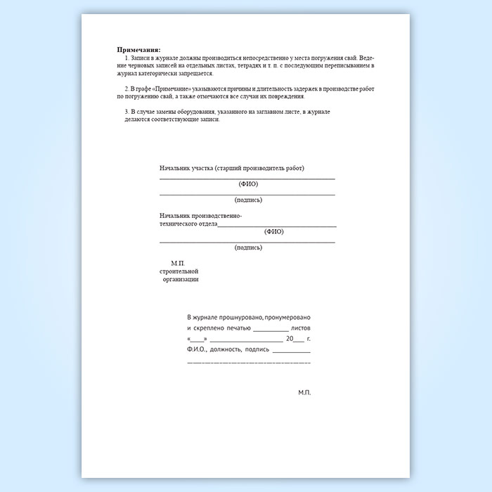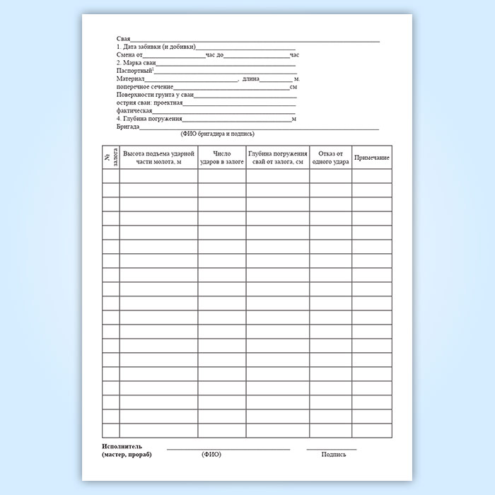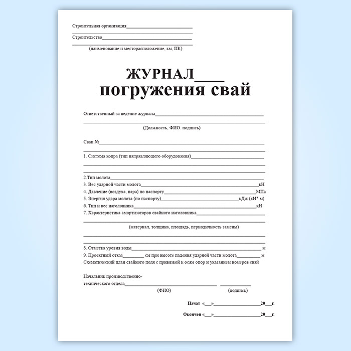 Журнал погружения свай в Верее купить