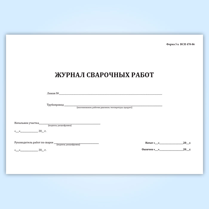 Журнал сварочных работ (ВСН 478-86) в Верее купить