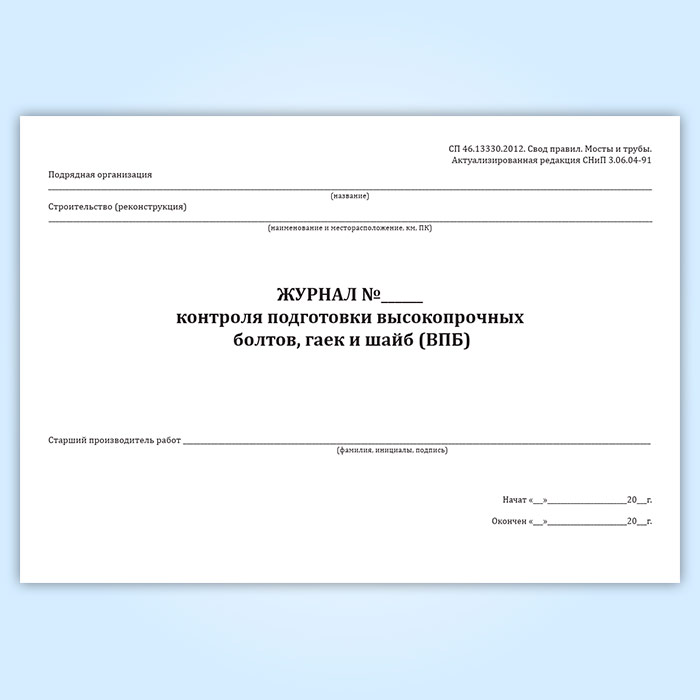 Журнал контроля подготовки высокопрочных болтов, гаек и шайб в Верее купить