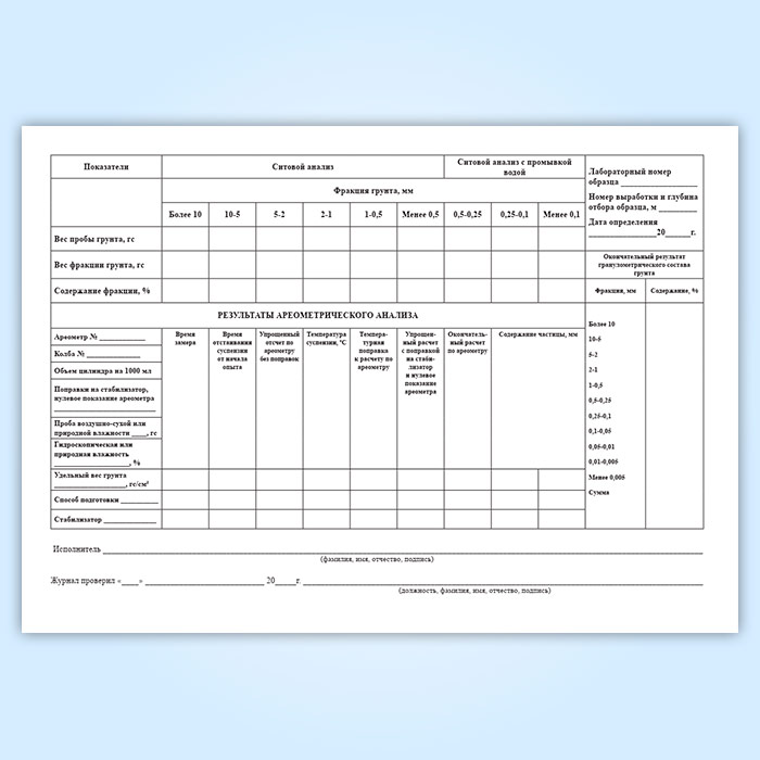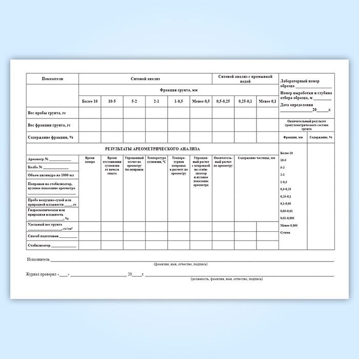 Журнал лабораторного определения гранулометрического (зернового) состава грунта в Верее купить