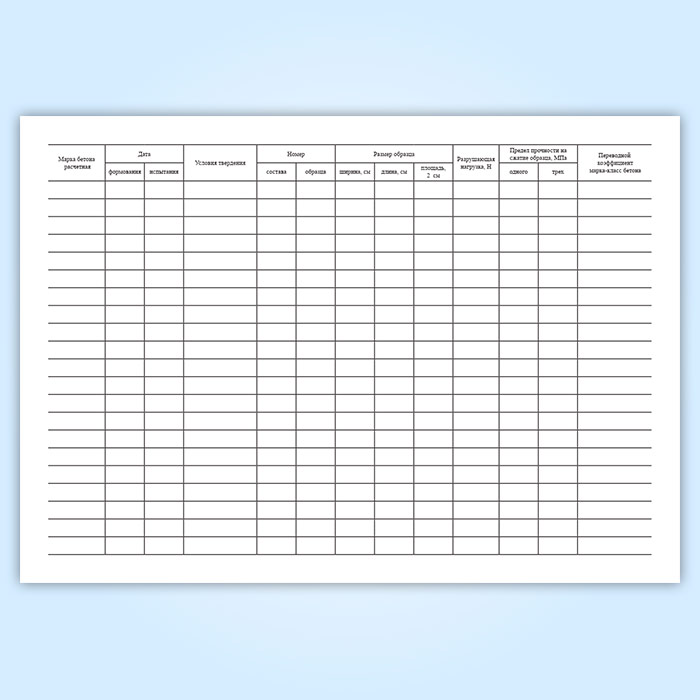Журнал результатов по определению прочности бетона эталонным молотком Кашкарова в Верее купить