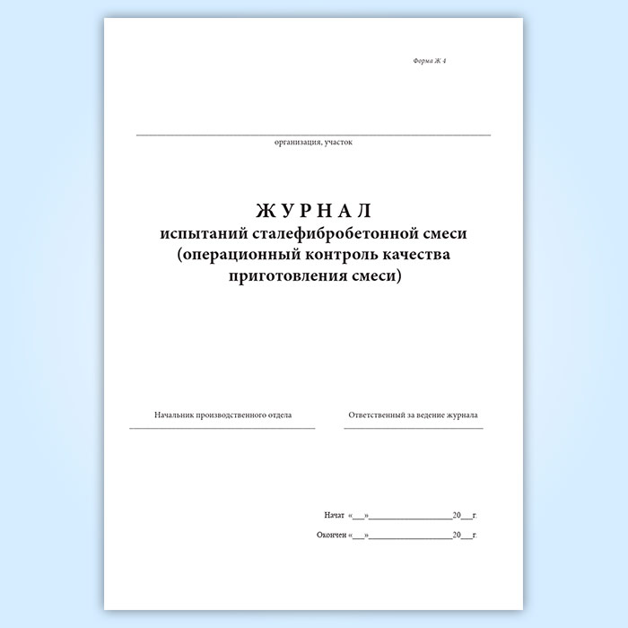 Журнал испытаний сталефибробетонной смеси (операционный контроль качества приготовления смеси) (форма Ж 4) в Верее купить