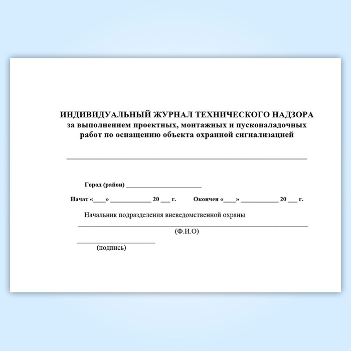 Индивидуальный журнал технического надзора за выполнением проектных, монтажных и пусконаладочных работ по оснащению объекта охранной сигнализацией в Верее купить