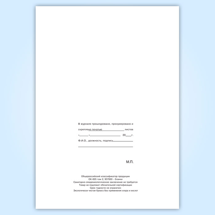 Вы получаете печатную продукцию прошнурованной и c местом для вашей печати в соответствии с действующими нормативными документами: