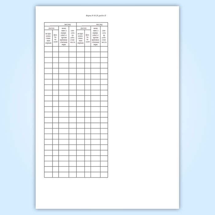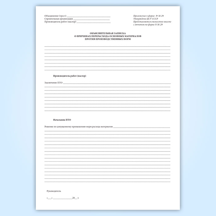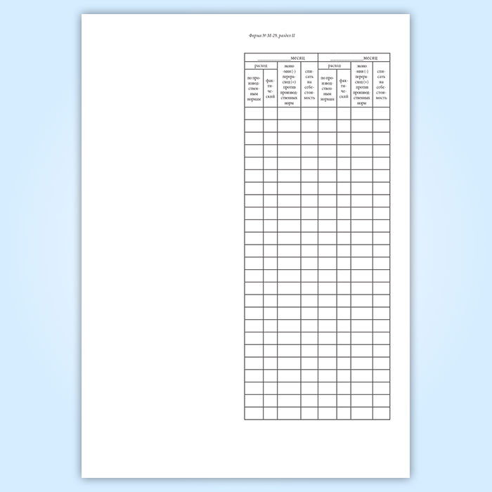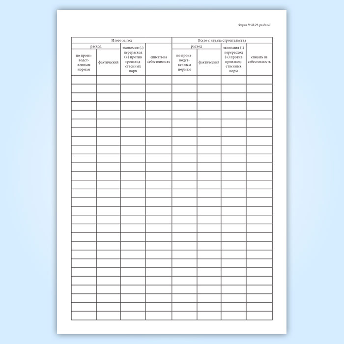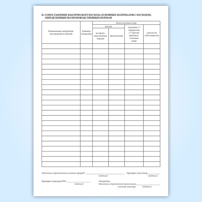 Отчет о расходе основных материалов в строительстве в сопоставлении с расходом, определенным по производственным нормам (форма М-29) в Верее купить