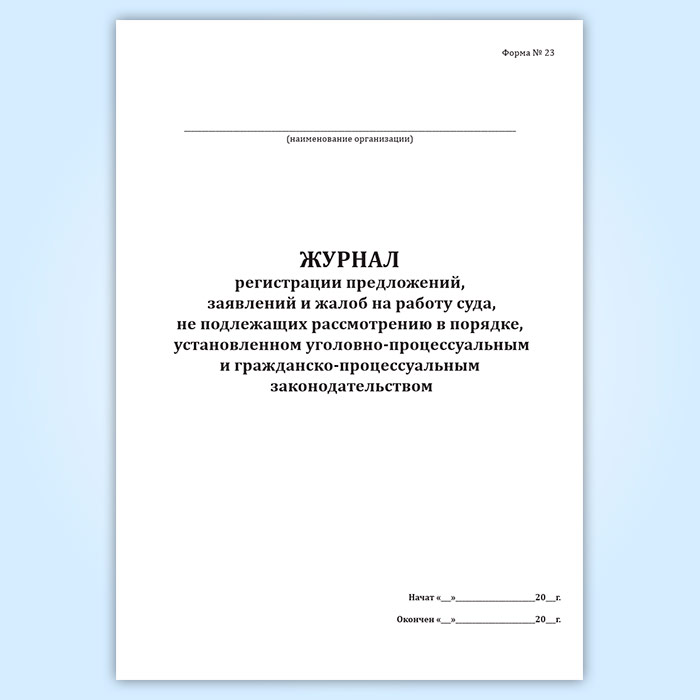 Журнал регистрации предложений, заявлений и жалоб на работу суда, не подлежащих рассмотрению в порядке, установленном уголовно-процессуальным и гражданско-процессуальным законодательством (форма № 23) в Верее купить