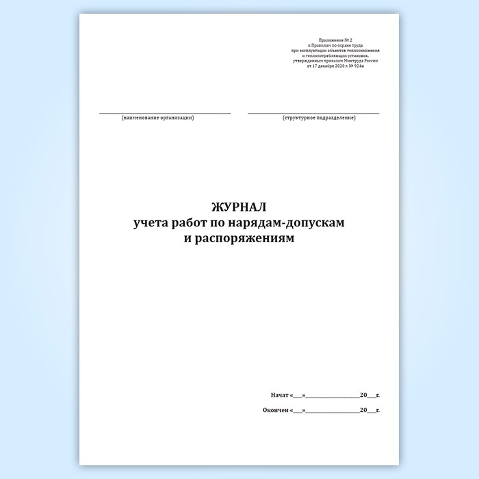 Журнал учета работ по нарядам-допускам и распоряжениям (для объектов теплоснабжения и теплопотребляющих установок) в Верее купить