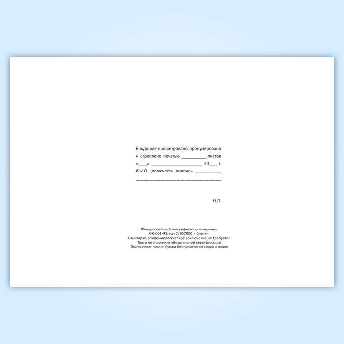 Вы получаете печатную продукцию прошнурованной и c местом для вашей печати в соответствии с действующими нормативными документами: