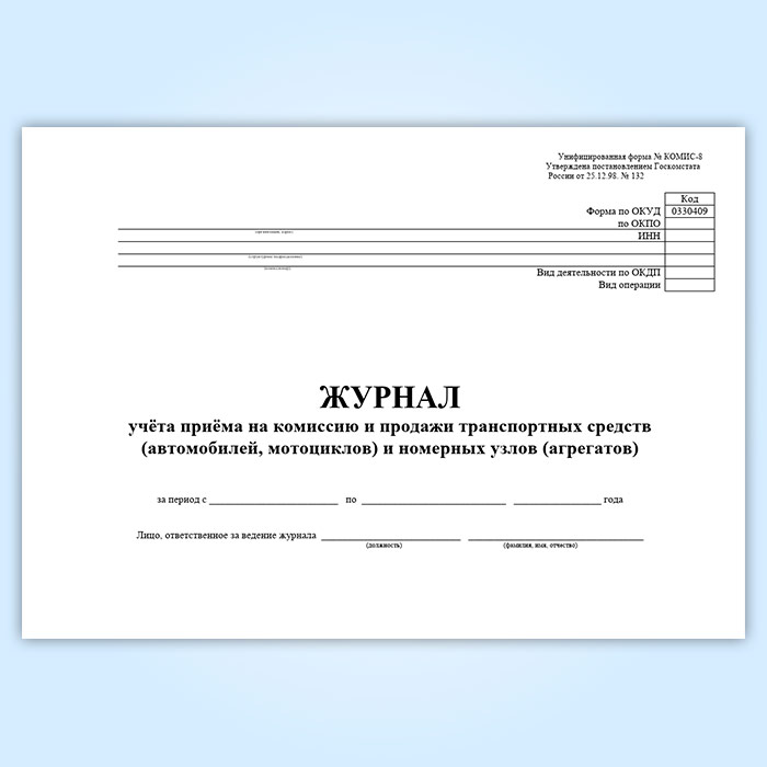 Журнал учета приема на комиссию и продажи транспортных средств (автомобилей, мотоциклов) и номерных узлов (агрегатов) (форма № КОМИС-8) в Верее купить