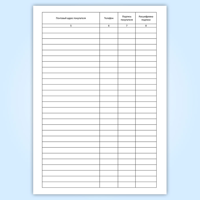 Вы получаете печатную продукцию прошнурованной и c местом для вашей печати в соответствии с действующими нормативными документами: