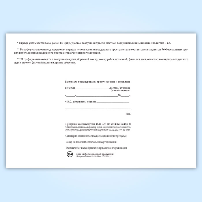 Журнал учета нарушений порядка использования воздушного пространства в Верее купить