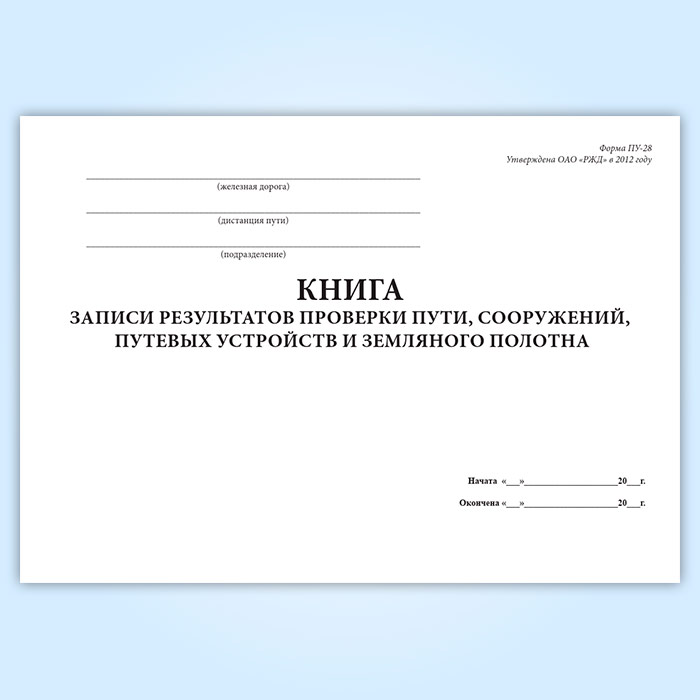 Книга записи результатов проверки пути, сооружений, путевых устройств и земляного полотна (форма ПУ-28) в Верее купить