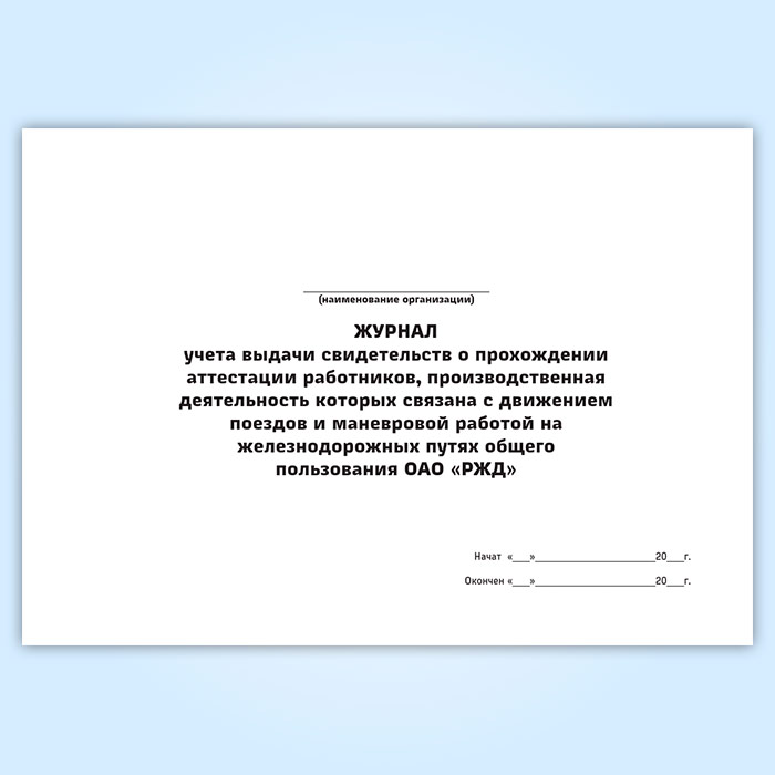 Журнал учета выдачи свидетельств о прохождении аттестации работников, производственная деятельность которых связана с движением поездов и маневровой работой на железнодорожных путях общего пользования ОАО «РЖД» в Верее купить