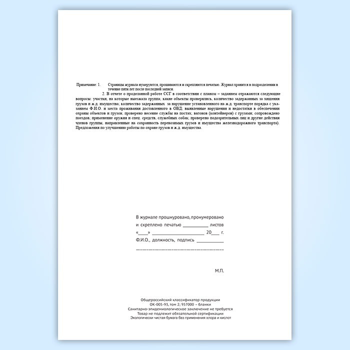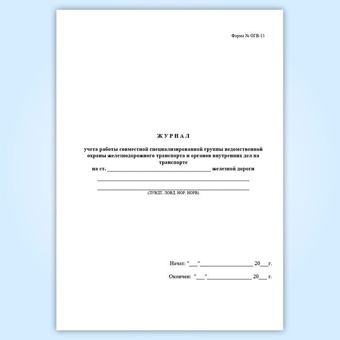 Журнал учета работы совместной специализированной группы ведомственной охраны железнодорожного транспорта и органов внутренних дел на транспорте (форма № ОГВ-15) в Верее купить