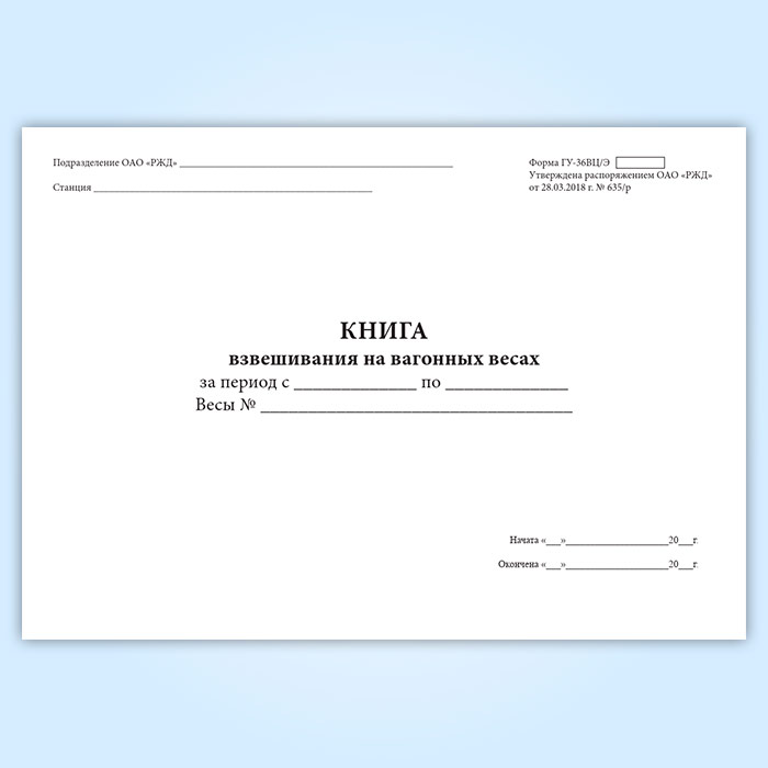 Книга взвешивания на вагонных весах (форма ГУ-36ВЦ/Э) в Верее купить