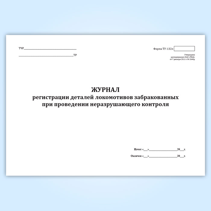 Журнал регистрации деталей локомотивов, забракованных при проведении неразрушающего контроля (форма ТУ-132л) в Верее купить