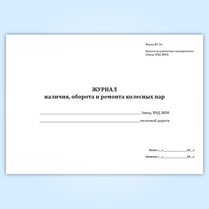 Журнал учета наличия, оборота и ремонта колесных пар (форма ВУ-54) в Верее купить