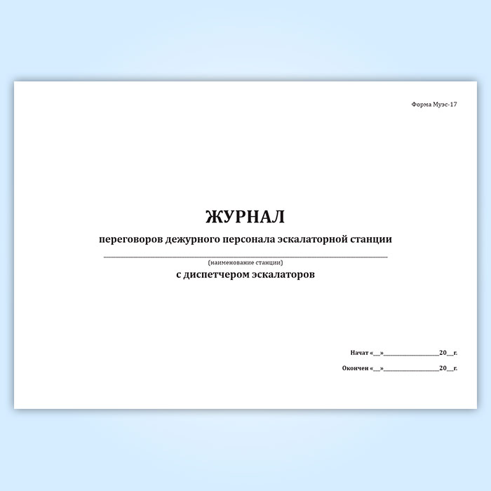 Журнал переговоров дежурного персонала эскалаторной станции с диспетчером эскалаторов (форма Муэс-17) в Верее купить